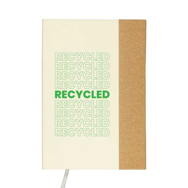A5 Size with hard cover made from Cork and Recycled Milk Carton material.