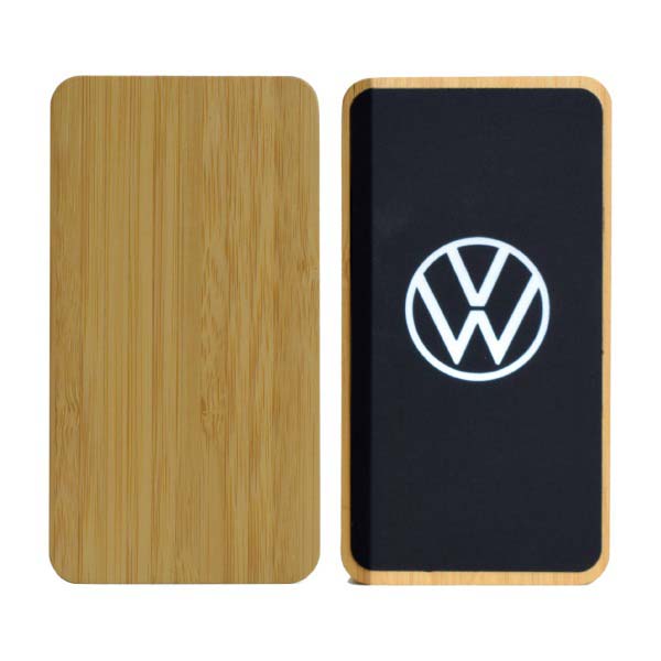 Bamboo power bank with light-up logo branding. Capacity 8000mAh. Input 5V/2.1A; USB output 5V/2.1A; Type-C input 5V/3A. Suitable for eco-conscious giveaways and executive gifts. Available with logo branding in Dubai/UAE.