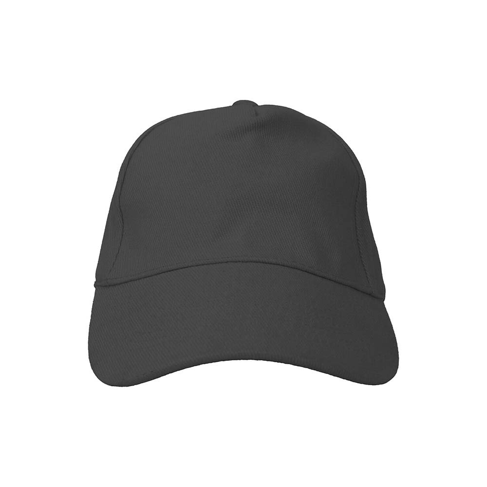 Black cap with a curved brim/visor and a structured 5-panel crown, designed for everyday wear and ideal for custom branding (printing or embroidery).