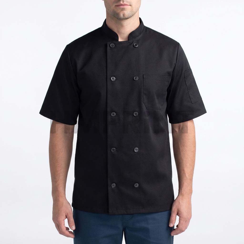 Black Chef Coat with Front Buttons Short Sleeves and Chest Pocket