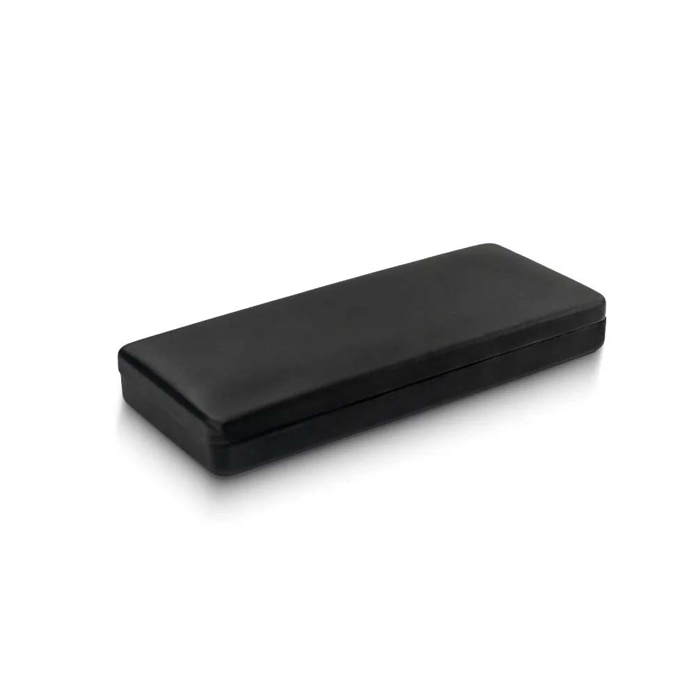 A black leather pen packaging box with a soft velvet interior for a refined, premium presentation. Ideal for corporate gifting and VIP stationery. Available with logo branding in Dubai/UAE.