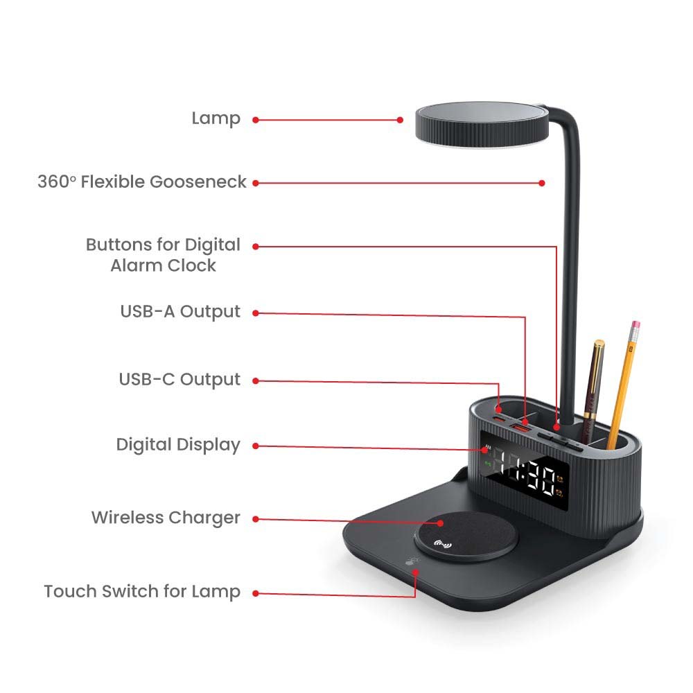 Home>Tech & Gadgets>Wireless Chargers>Desk Lamp with Up to 15W Wireless Charging, Digital Clock & Pen Holder (USB Outputs)