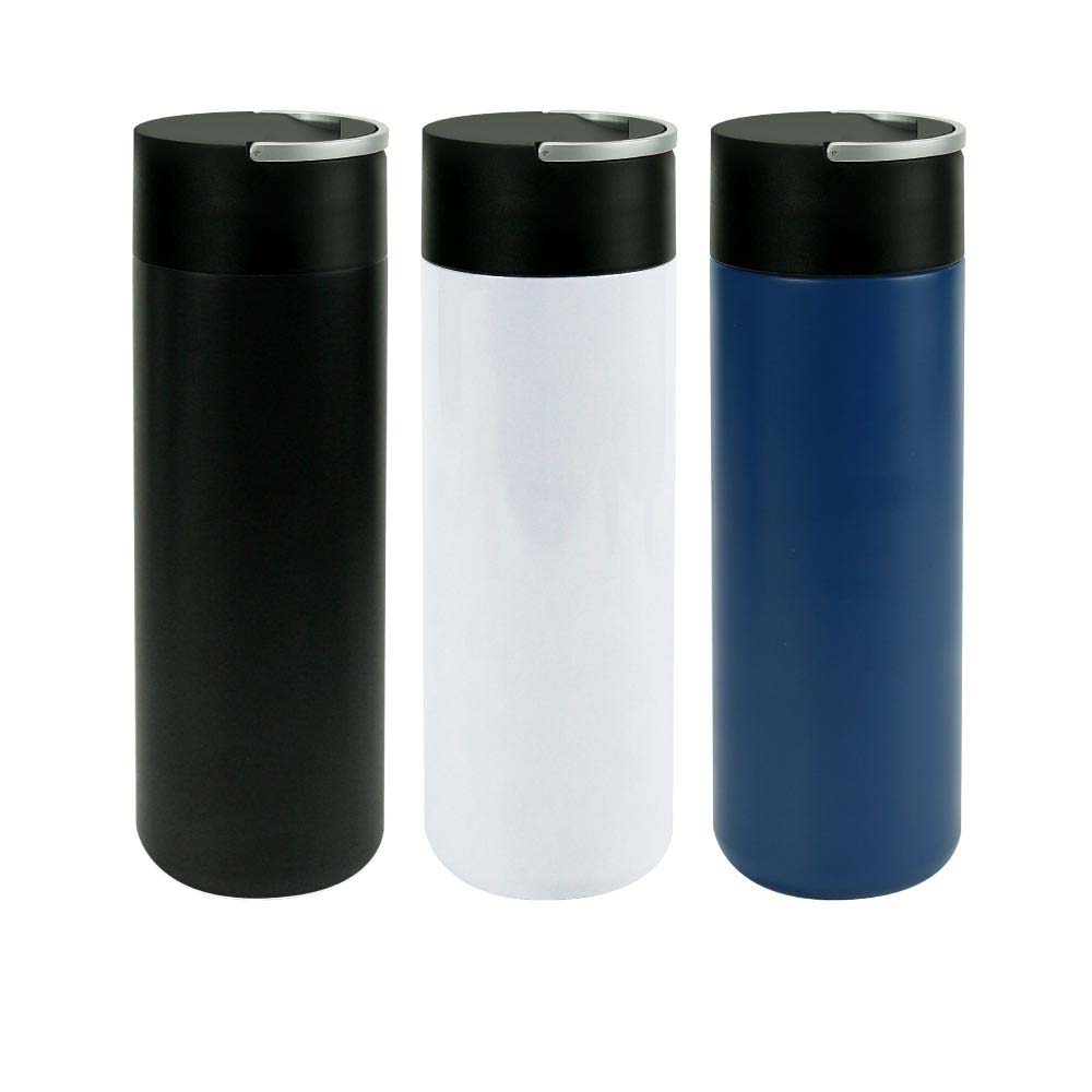 A versatile double-wall stainless steel vacuum bottle with a carry handle that also works as a phone holder. Product size is 72 x 72 x 220 mm. Available with logo branding in Dubai/UAE.