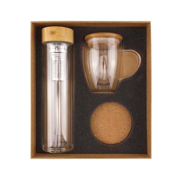 Eco-Friendly Gift Set with Glass Flask, Cup & Cork Coasters