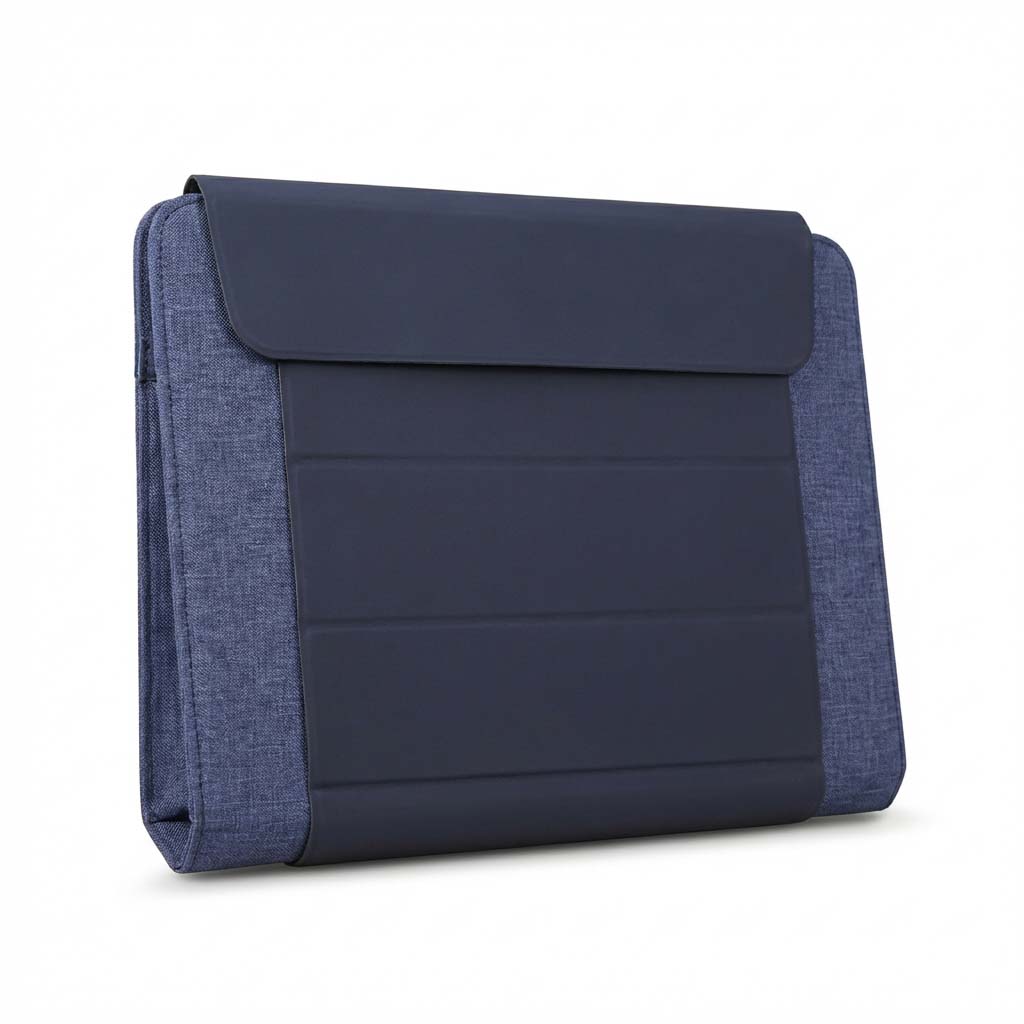 Foldable portable tech organizer that can attach to devices and works as a flexible pouch, desk sleeve, gadget case, or backpack insert for office and home use. Product size 330 x 265 x 20 mm. Available with logo branding in Dubai/UAE.