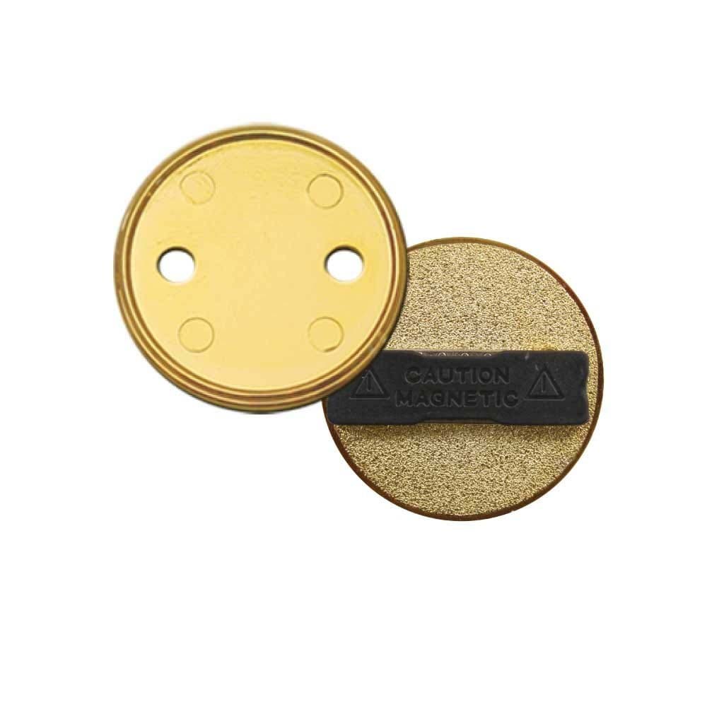 A compact gold-look PVC injected round name badge for minimal, professional identification. Size: 30 mm with durable PVC construction. Available with logo branding in Dubai/UAE.