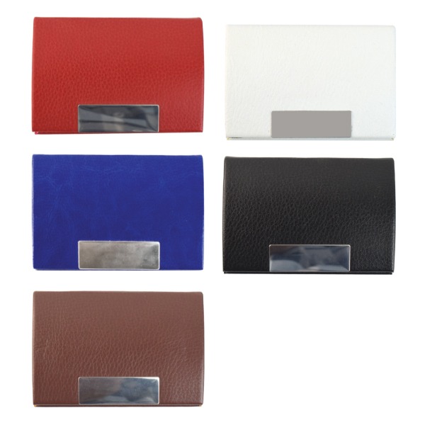 Leather business card holder case with magnetic closure and built-in magnet for easy opening. Product size is 96 x 65 x 14 mm. Available with logo branding in Dubai/UAE.