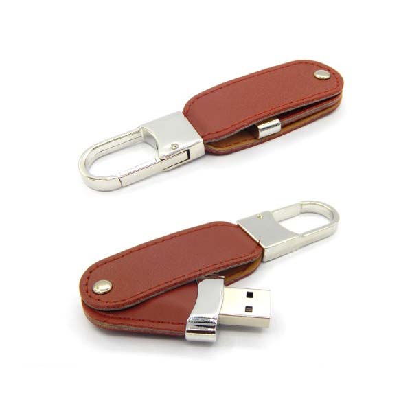 Leather-case keychain USB flash drive that is durable and stylish, commonly used for promotional gifting. Capacities Available: 4GB/8GB/16GB/32GB/64GB. Size 100 x 25 x 12 mm. Available with logo branding in Dubai/UAE.