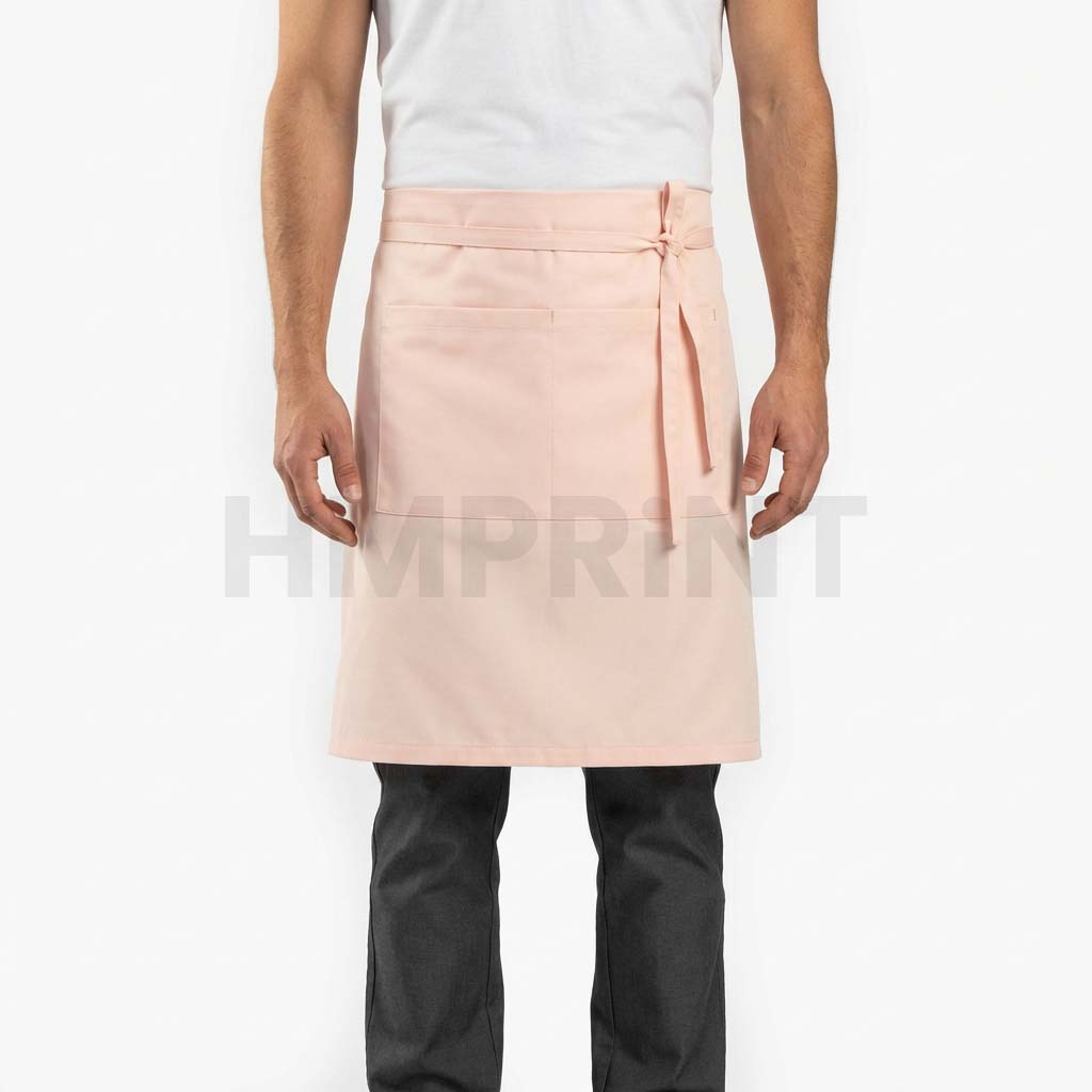 Light pink/blush bistro-style waist apron (long half apron) with side waist ties and a front pocket, designed for restaurants, caf?s, catering, and service staff.