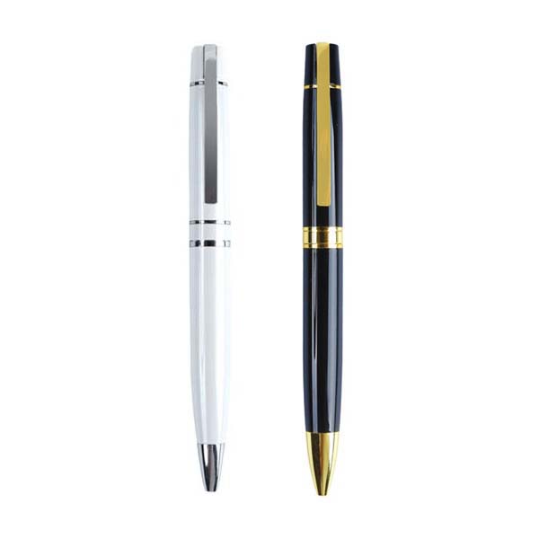 Luxury chrome metal ballpoint pen with twist-action mechanism and pocket clip for premium gifting. Product size is 140 x 16 mm. Available with logo branding in Dubai/UAE.
