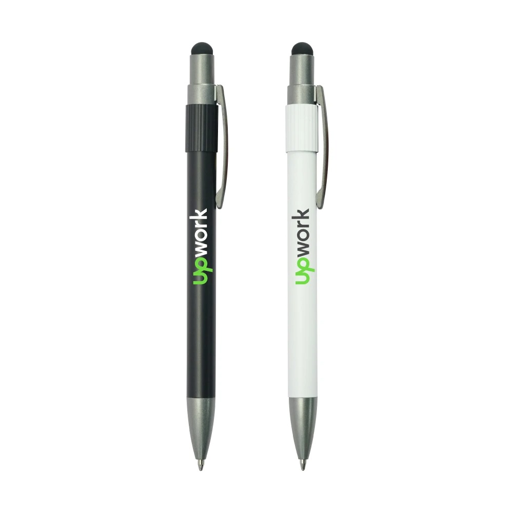 A multifunction metal pen featuring an integrated stylus and a spinner element, sized 15 x 12 x 150 mm. Great for modern gifting, desk use, and engagement-focused giveaways. Available with logo branding in Dubai/UAE.