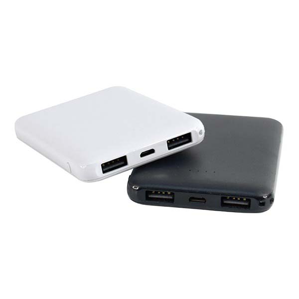 Compact 5000mAh mini power bank with plastic body. Inputs (Micro-USB/Type-C) 5V/2A and output 5V/2A. Ideal for travel and event giveaways. Available with logo branding in Dubai/UAE.