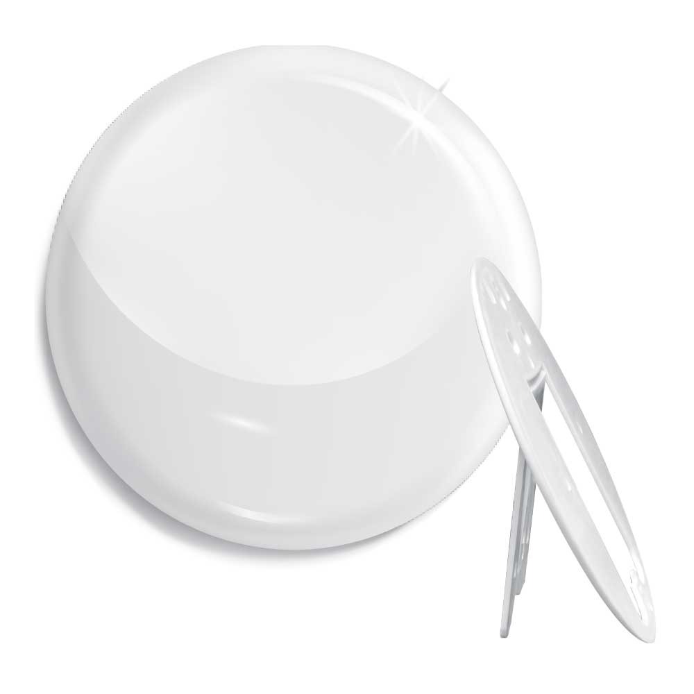 58 mm plastic photo button with stand for desk or counter display. A creative promotional item that keeps your message visible after the event. Available with logo branding in Dubai/UAE.