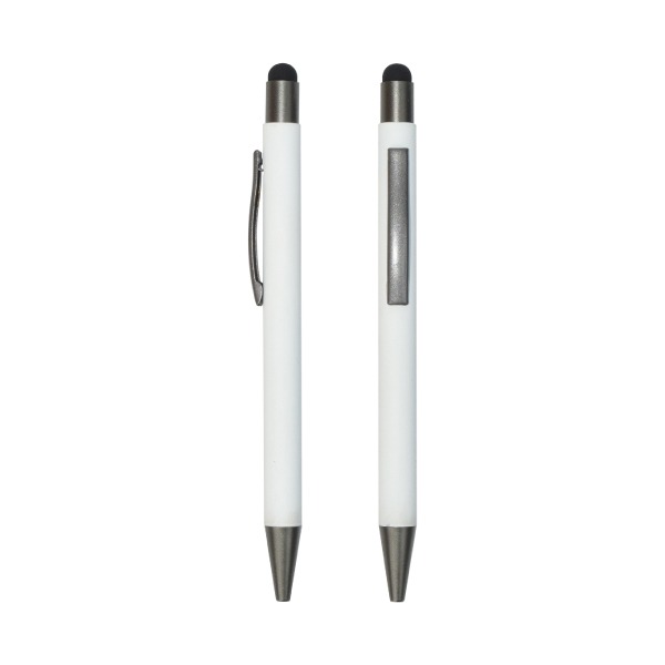 Smooth-writing aluminium ballpoint pen with stylus tip for touch Screens. Product Size: 140 ? 10 mm