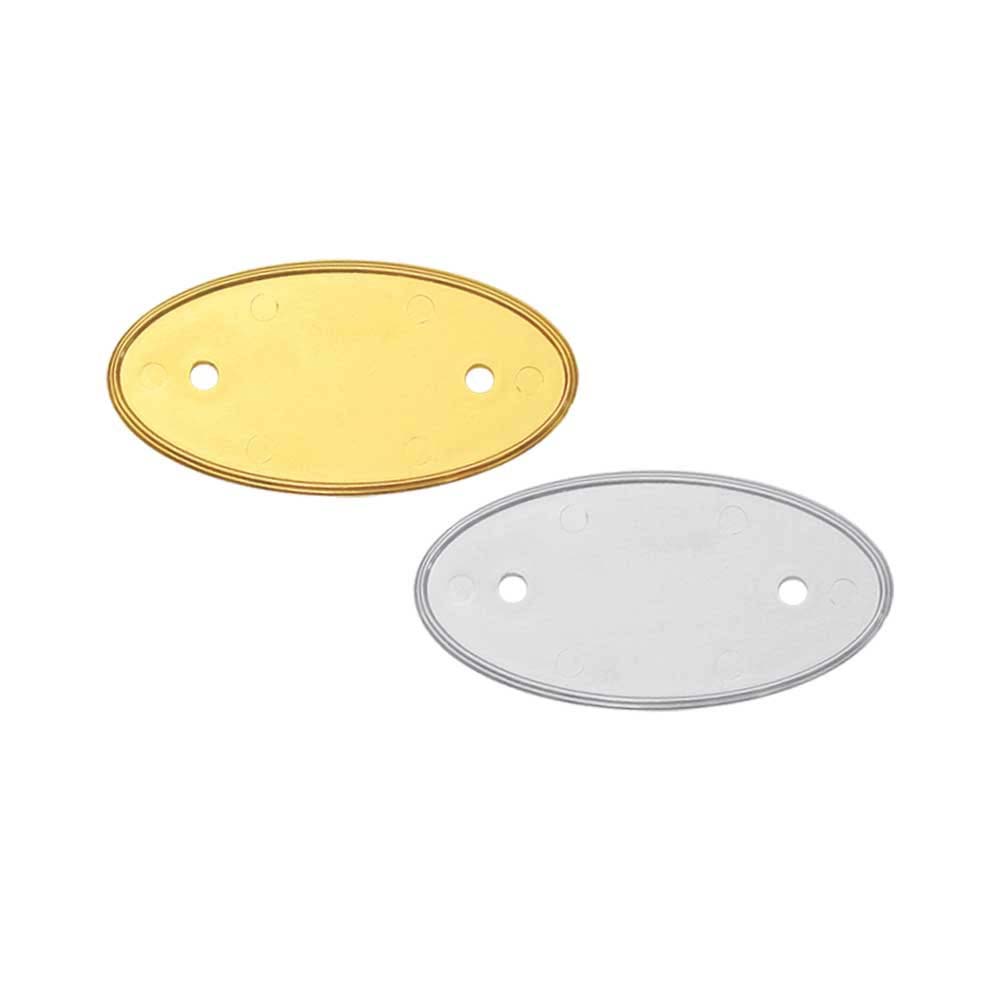 A small gold-look PVC injected oval name badge for minimal, neat identification. Size: 40 x 20 mm with durable PVC construction. Available with logo branding in Dubai/UAE.