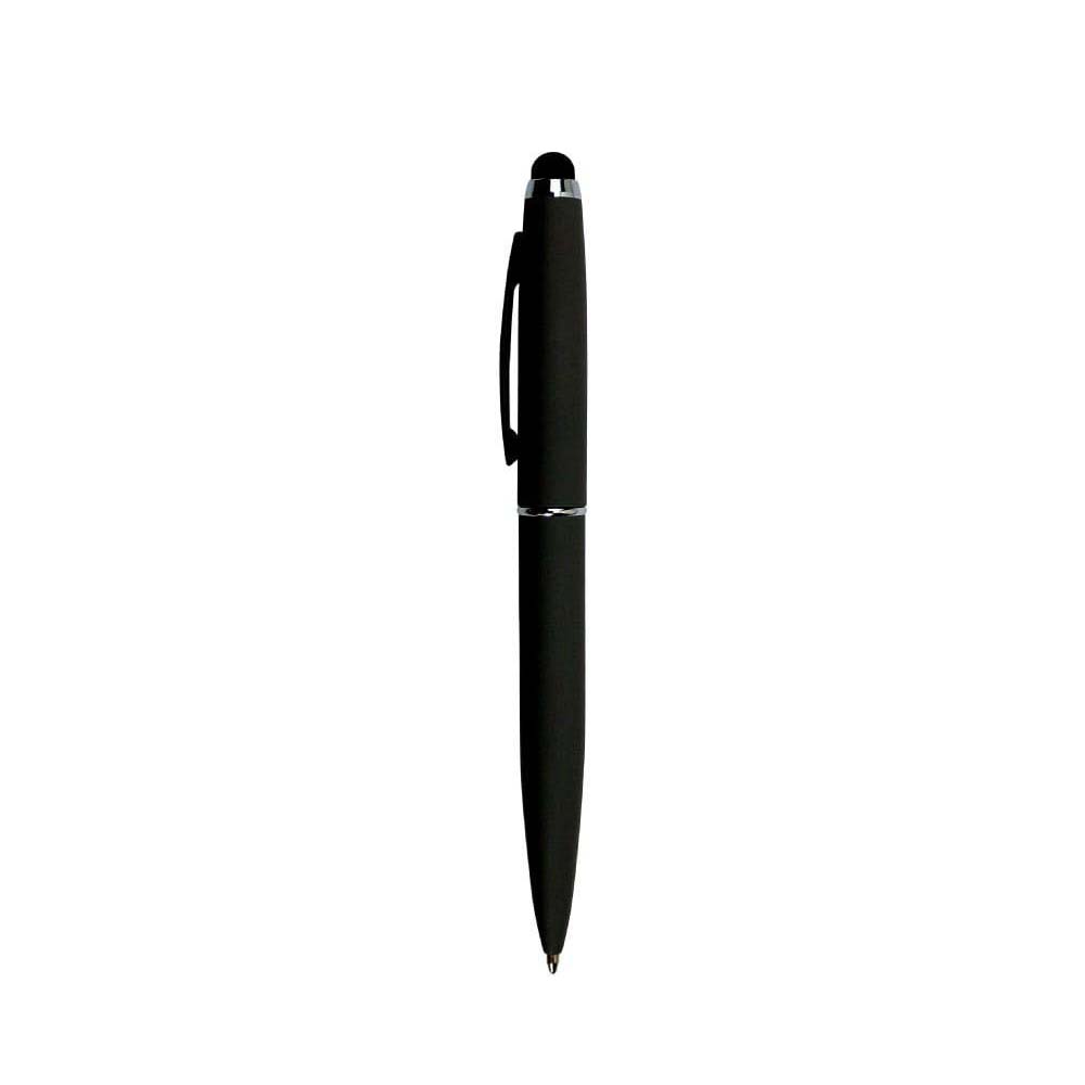 A rubberized metal stylus pen designed for a soft-touch grip and premium look, sized 145 x 13 mm. Laser engraving produces a high-contrast chrome-style effect on the finish. Available with logo branding in Dubai/UAE.