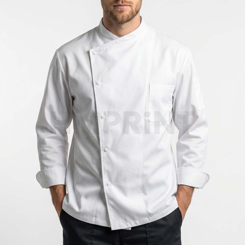 Home | Long Sleeve Chef Coat | White Chef Coat with Side Buttons Long Sleeves Chest Pocket and Sleeve Pocket